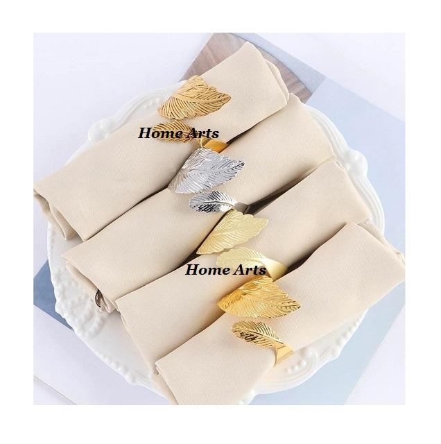 Rond de serviette en forme de feuille de conception antique de luxe couleur or en métal de qualité peut contenir un rond de serviette en tissu à un prix abordable