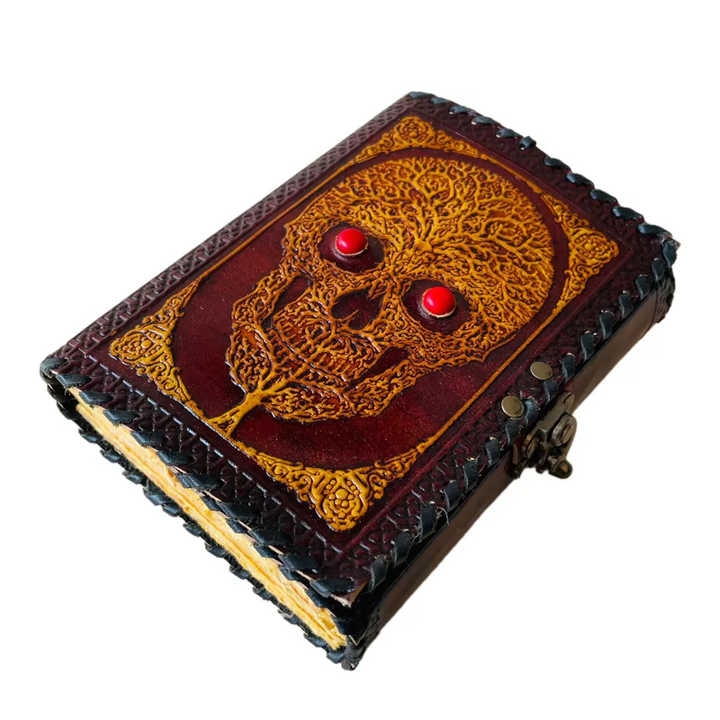 Journal antique en cuir gaufré jour de pierre morte Vintage crâne C serrure jaune livre d'or fait à la main Deckle Art papier Notebook