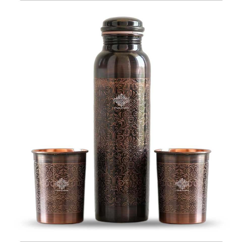 Ensemble cadeau en cuivre pur embossé antique, bouteilles d'eau en acier inoxydable pour cadeaux de remerciement