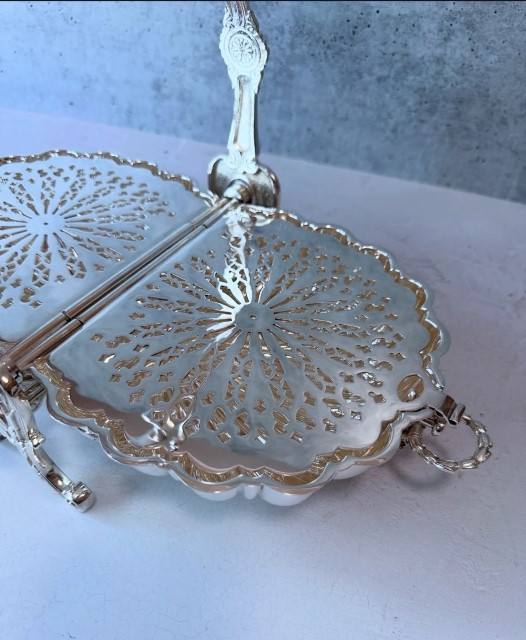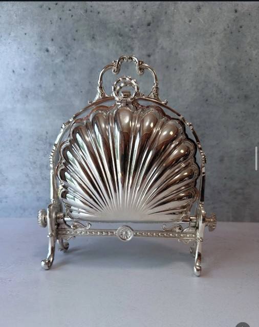 Antique English Victorian Silver Plated Scallop Shell Folding Biscuit Warmer Bun Warmer Toast Warmer Serving Box