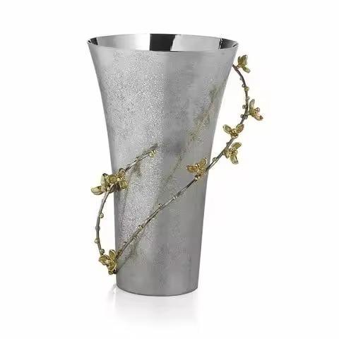 Vase en métal finition antique porte-fleurs rustique Accent décoratif pour la table et l'affichage intérieur