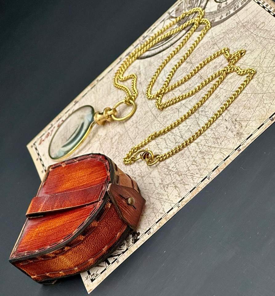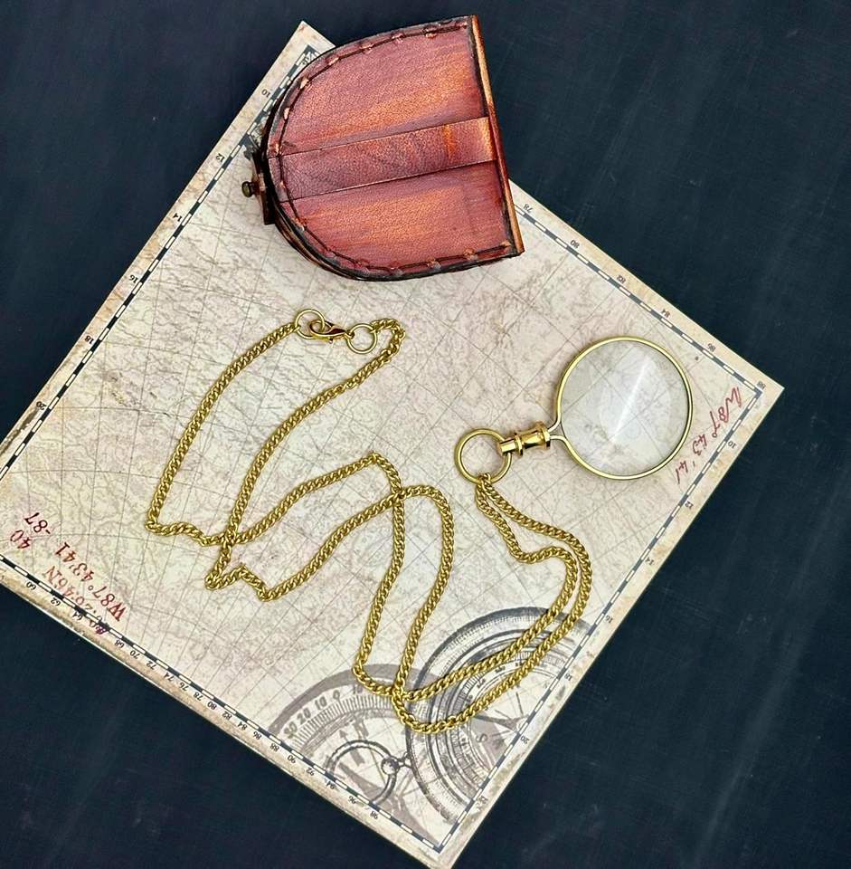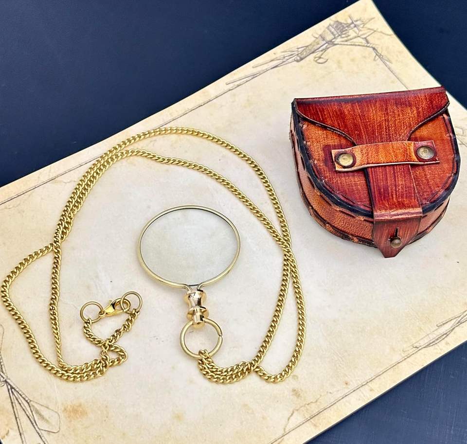 Loupe en laiton moderne à finition antique avec étui et pochette en cuir pour un usage domestique