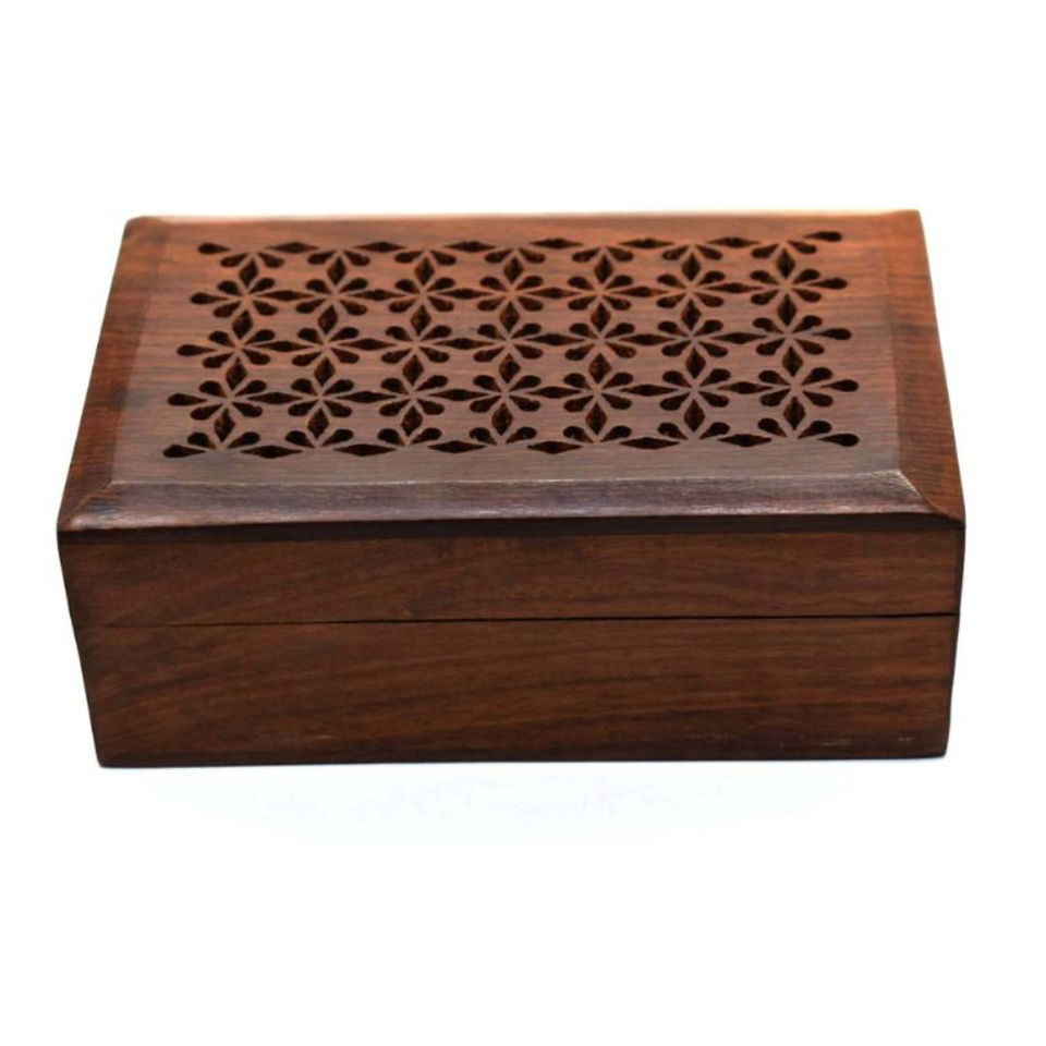 Antique Flower Design Mango Wood Box Eco-Friendly Polished Storage Container for Occasions and Parties