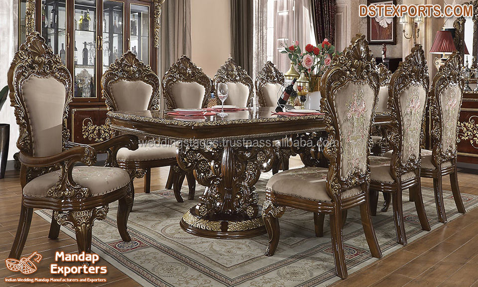 Bens — ensemble de Table à manger en bois de Style français, mobilier de luxe en bois de teck, marron Vintage, sculpture Antique