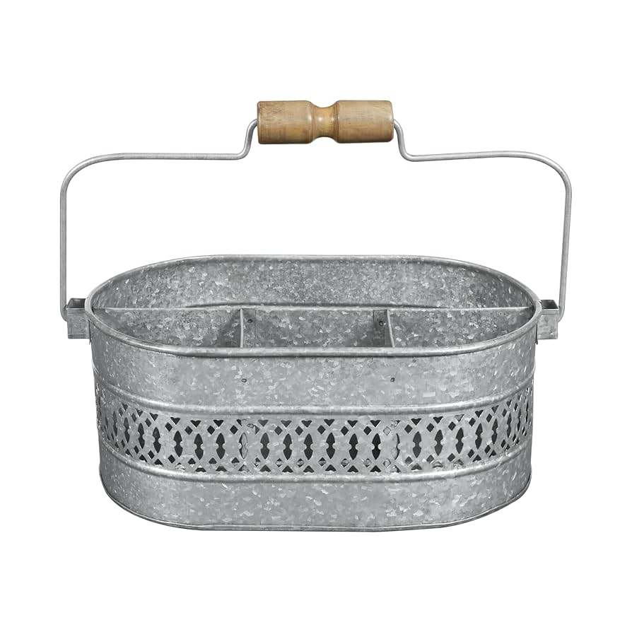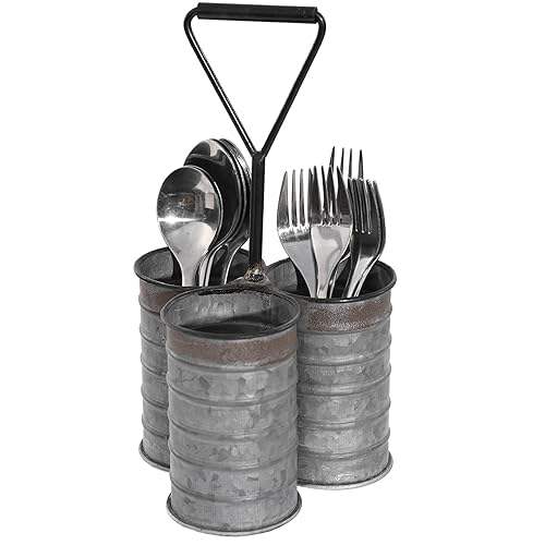 Porte-ustensiles de cuisine et organisateur de rangement pour la maison en métal galvanisé antique à double seau avec poignée en bois