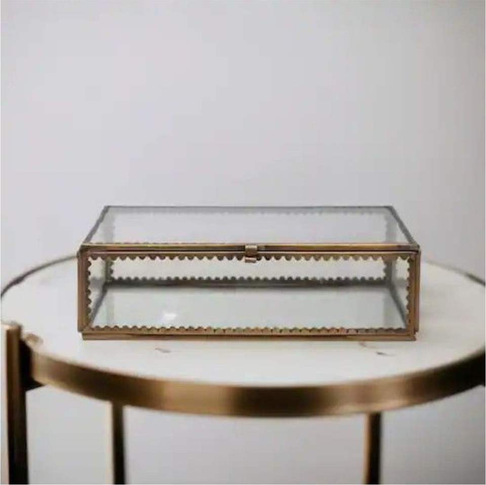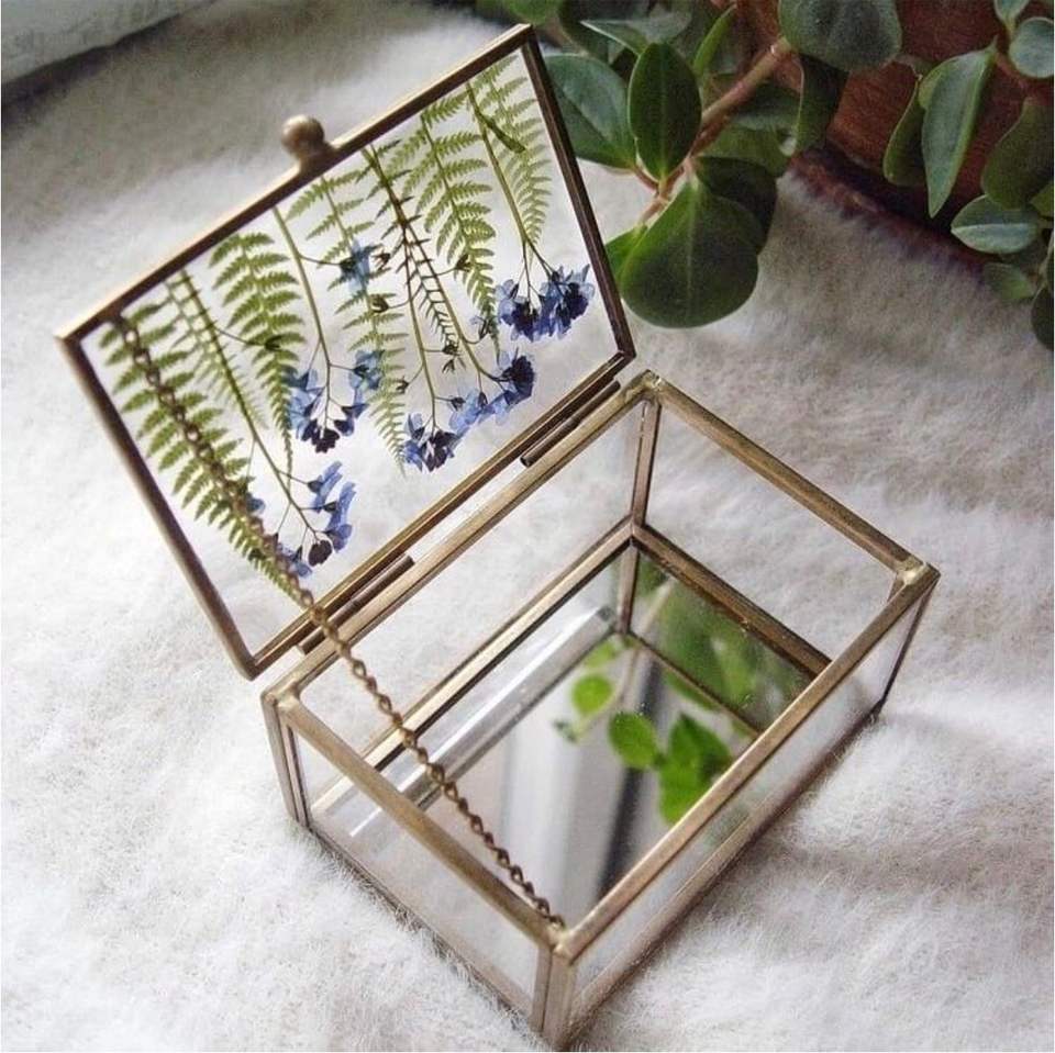 Antique Glass Wedding Card Box with Gold Frame | Hand-Painted Floral Preserved Flower Box | Aesthetic Jewelry Display Case