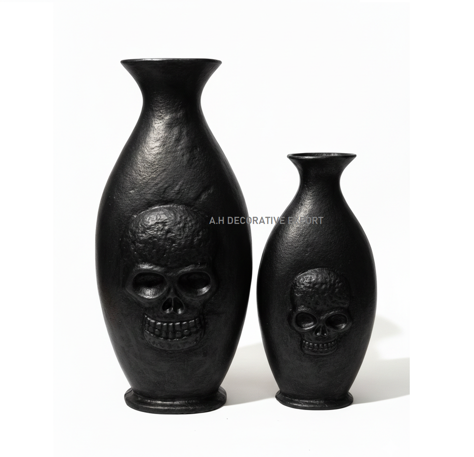 Décoration squelette finition or antique - Urne florale en métal gaufré pour un style gothique glamour - Accents de crâne dorés