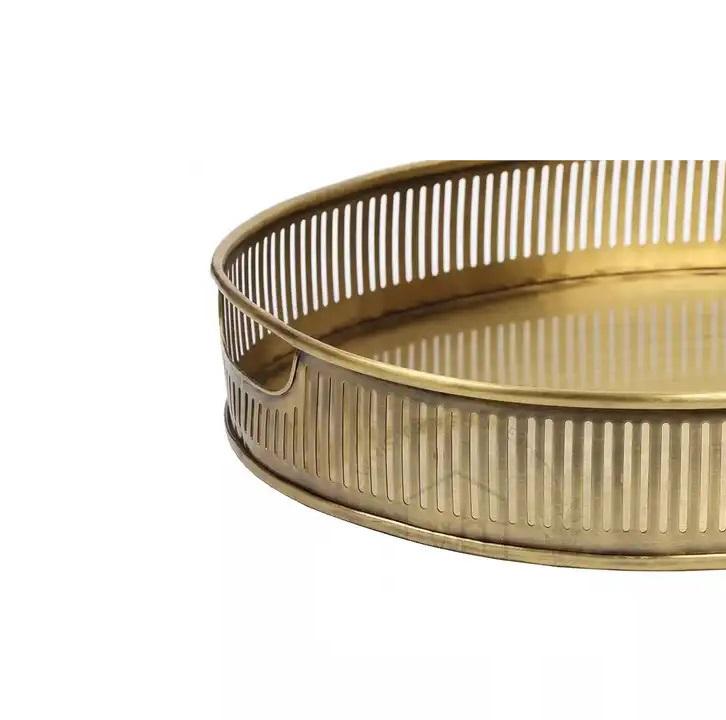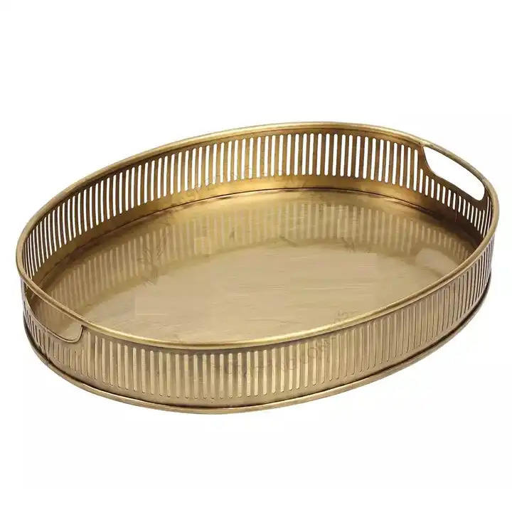 Plateau de service en métal finition or antique, forme ovale, adapté à la table à manger, aux collations, aux aliments et aux boissons