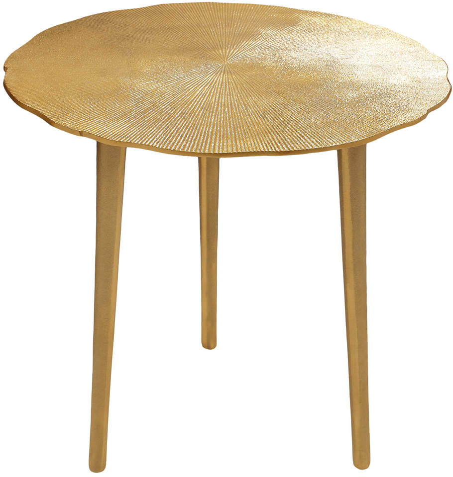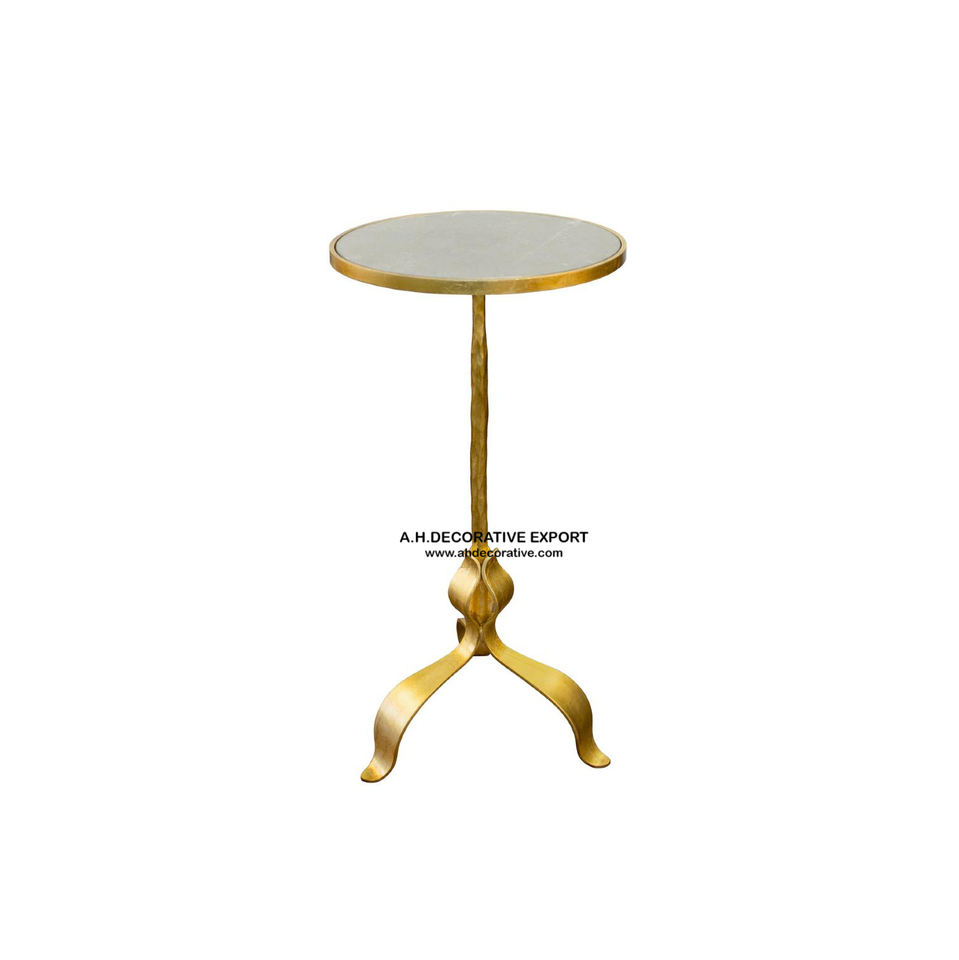 Table d'appoint moderne en métal doré antique, forme ronde avec base conique arrondie, pour le salon