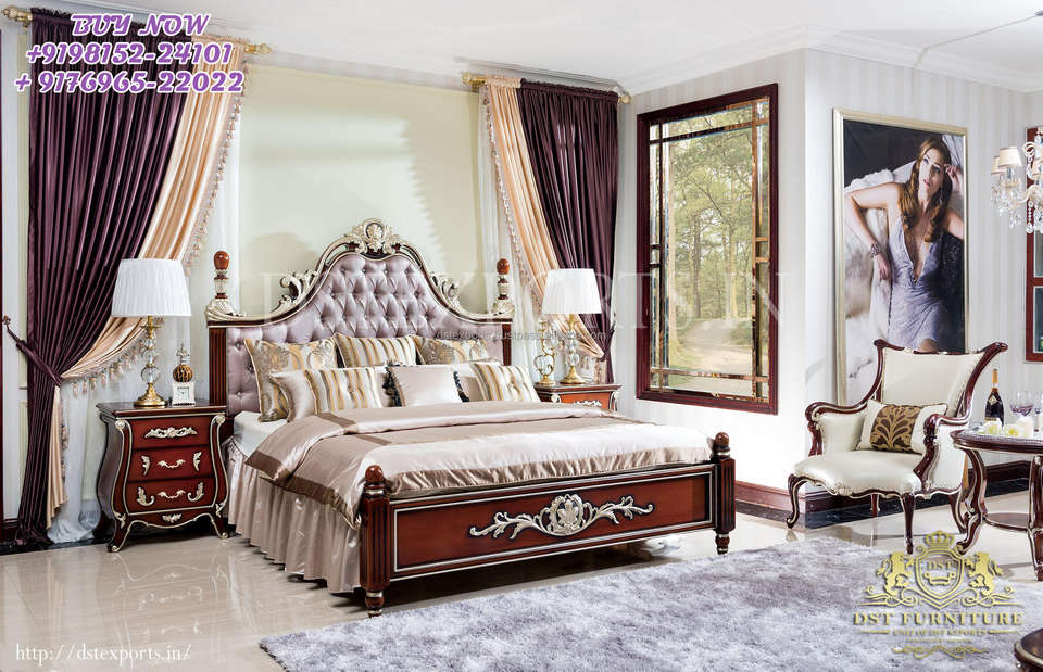 Lit Queen Size Antique Doré et Blanc