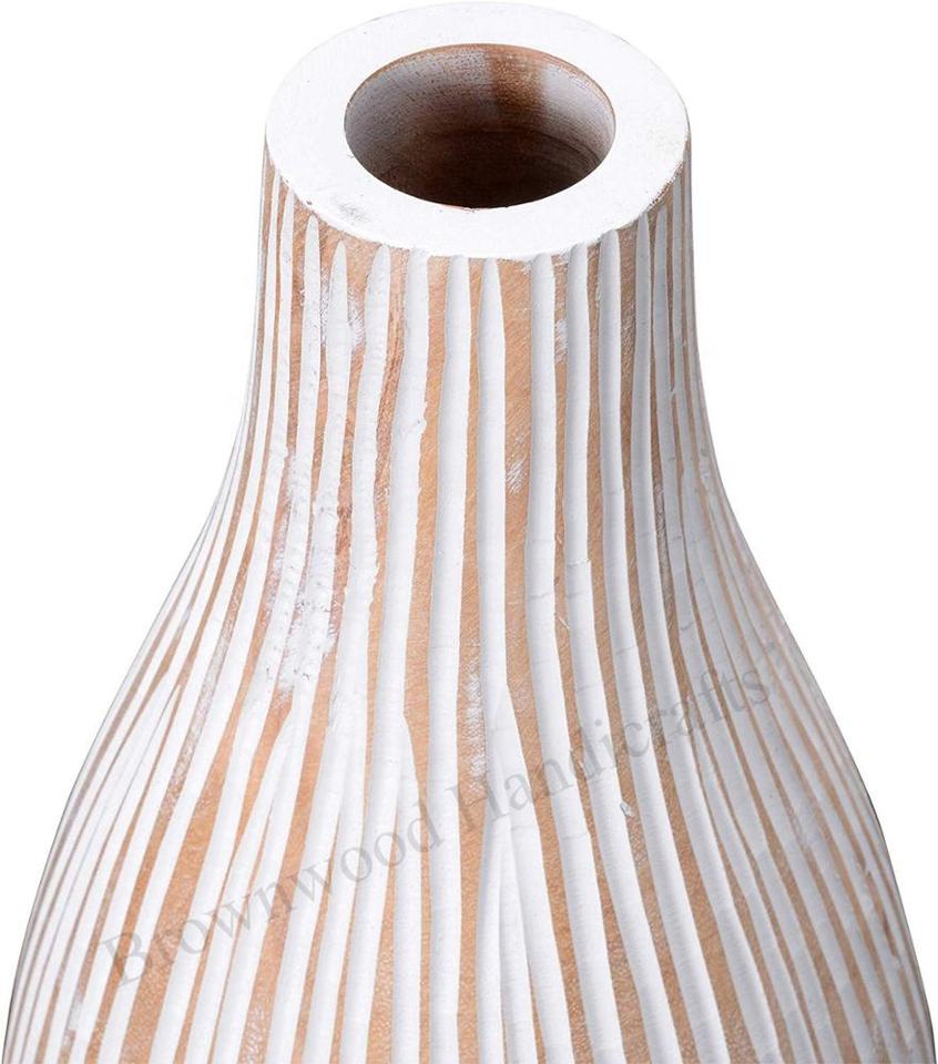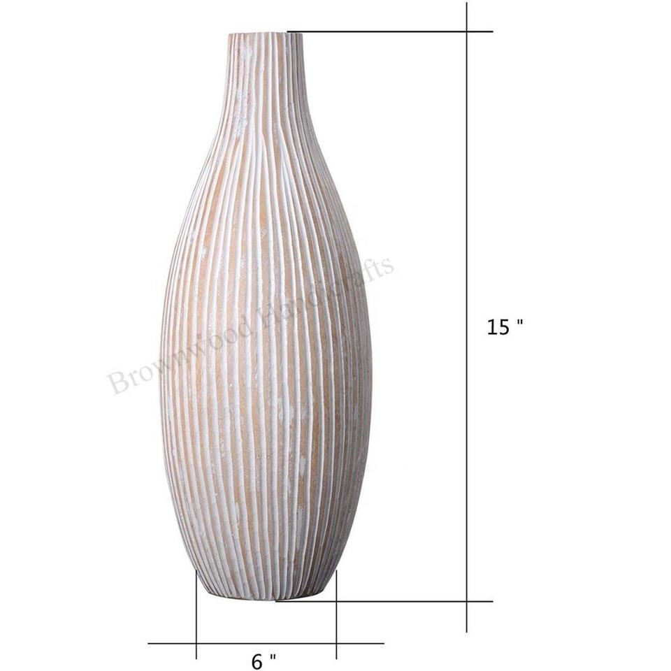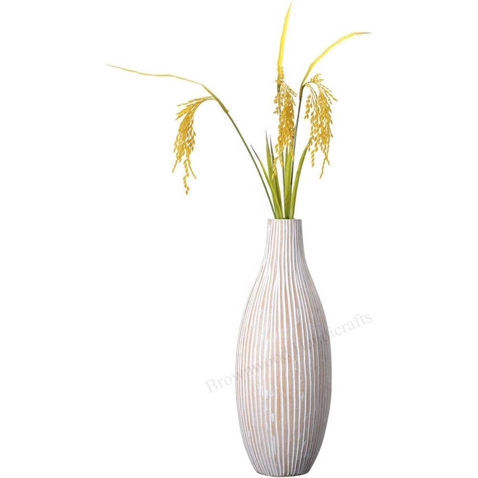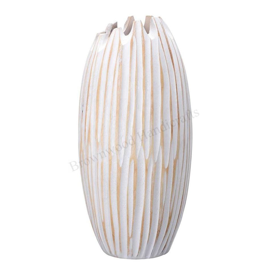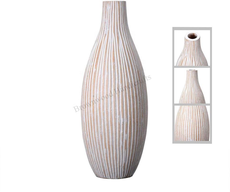 Vase à fleurs en bois peint blanc sculpté à la main de designer antique Vases décoratifs au meilleur prix de gros pour les vendeurs en ligne