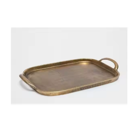 Plateau de service en métal de forme ovale fait à la main antique unique moderne en aluminium décoratif personnalisé impression de logo acceptable nickelé