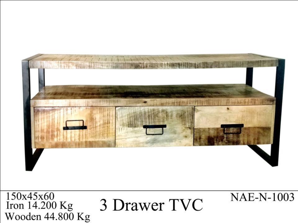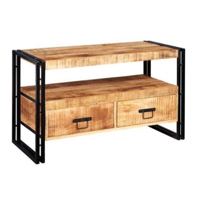Meuble TV antique en fer et bois massif de style industriel et vintage pour le salon, avec des caractéristiques de rangement