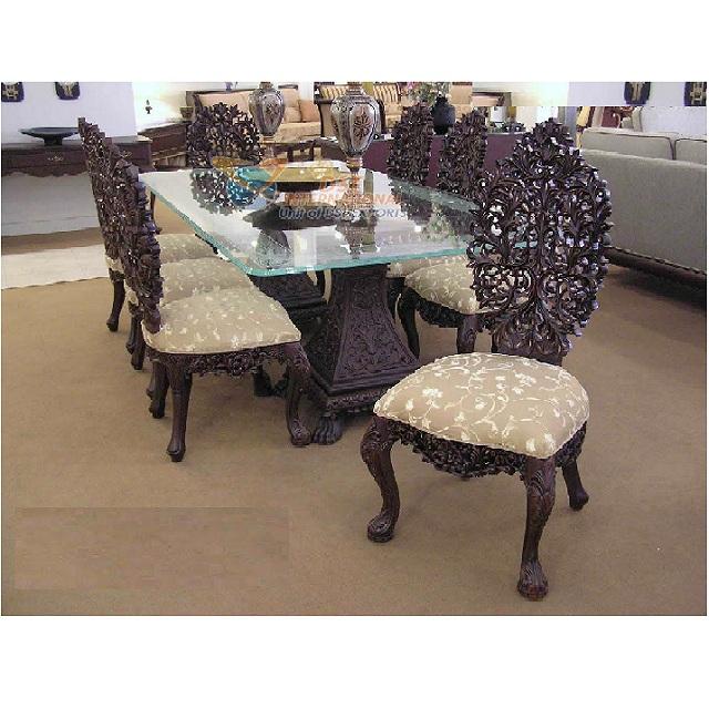 Antique Leaf Carving Black Polish Dining Table SetProduct name