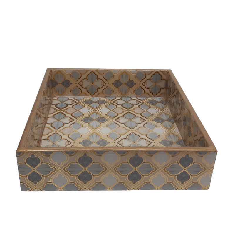Plateau de service en bois aspect antique de forme carrée pour la maison et les hôtels plateaux de service alimentaire de table faits à la main