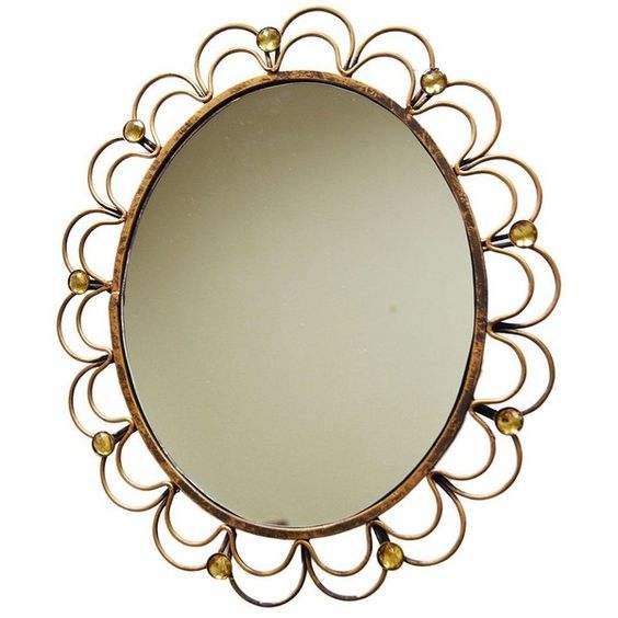 Miroir de maquillage mural antique en fer doré avec cadre métallique pour décor de salon et chambre à coucher