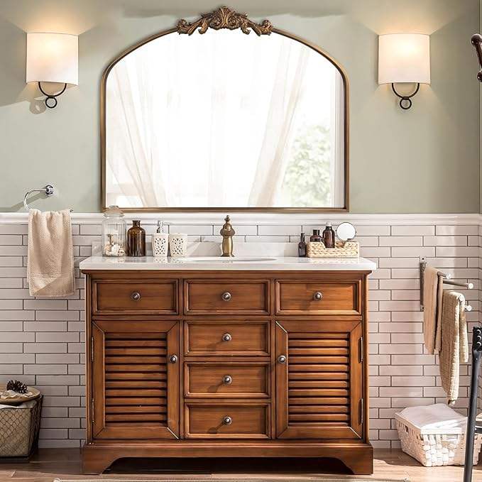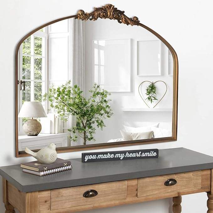 Miroir décoratif à cadre en métal antique personnalisé miroir de courtoisie de salle de bain européen arqué vintage sculpté à bordure moderne