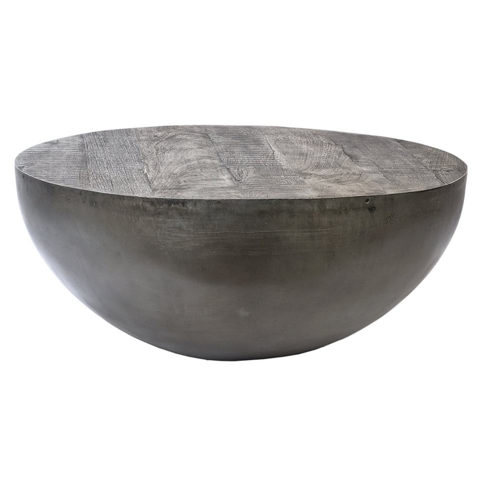 Table basse ronde minimaliste antique pour salon, table à thé distinctive en gris naturel