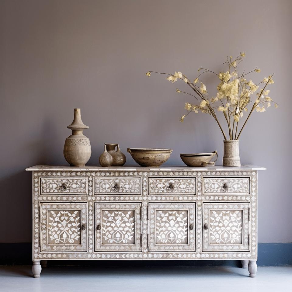 Table de console d'incrustation d'os moderne