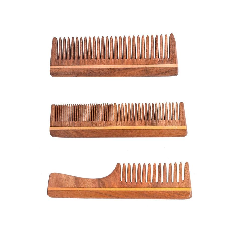 Peigne en bois de neem naturel, écologique et fait à la main pour les soins des cheveux - Saniya Handicraft