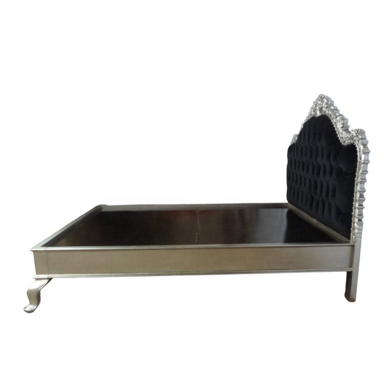 Cadre de lit en bois de reproduction antique lit rembourré en tissu de velours et touffeté en bouton de verre de cristal pour meubles de chambre à coucher