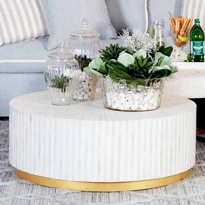 Table basse ronde rétro antique avec un design minimaliste intemporel Charme classique en incrustation d'os pour le salon Style vintage