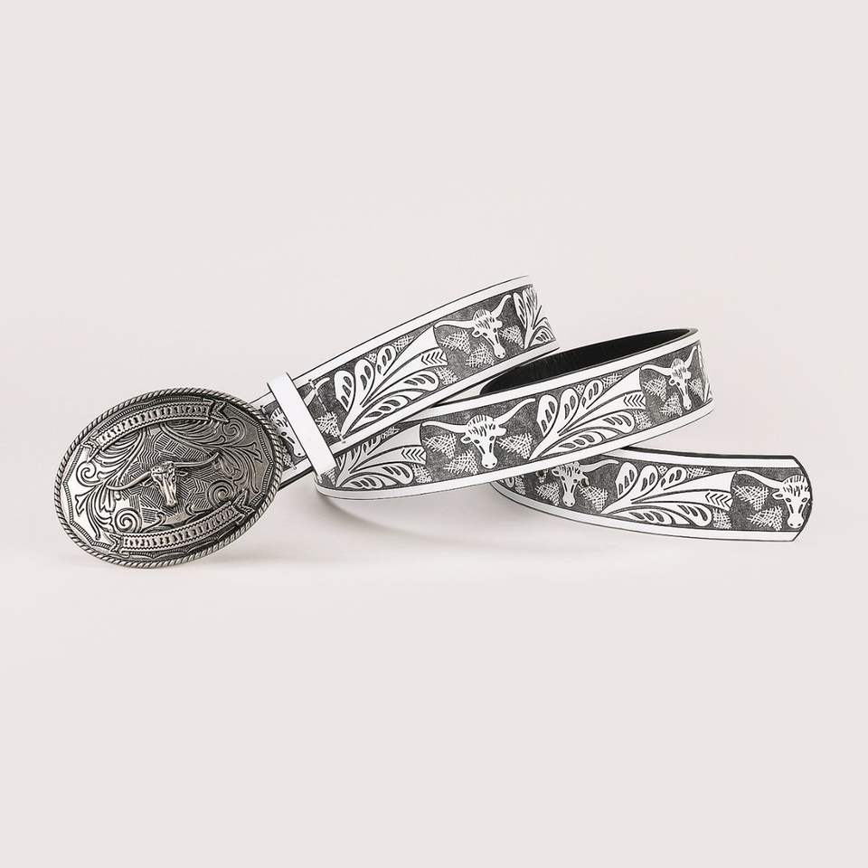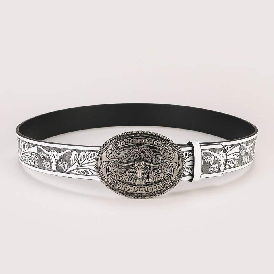 Tête de vache argentée antique sculptée Style occidental large ceinture en cuir véritable pour les femmes avec boucle en alliage directe du Pakistan