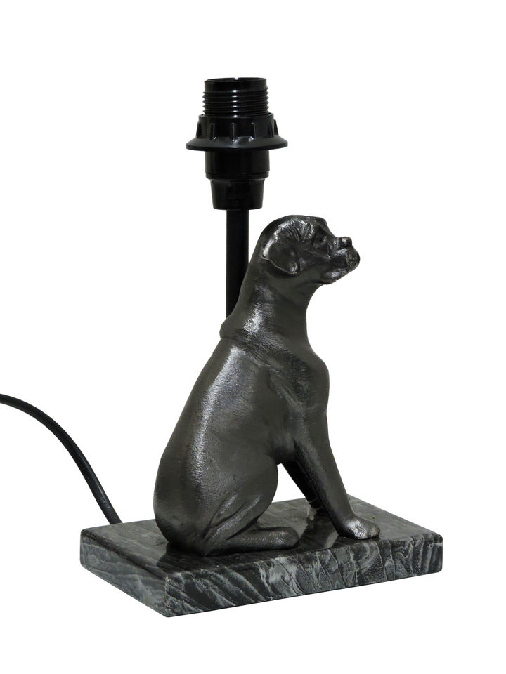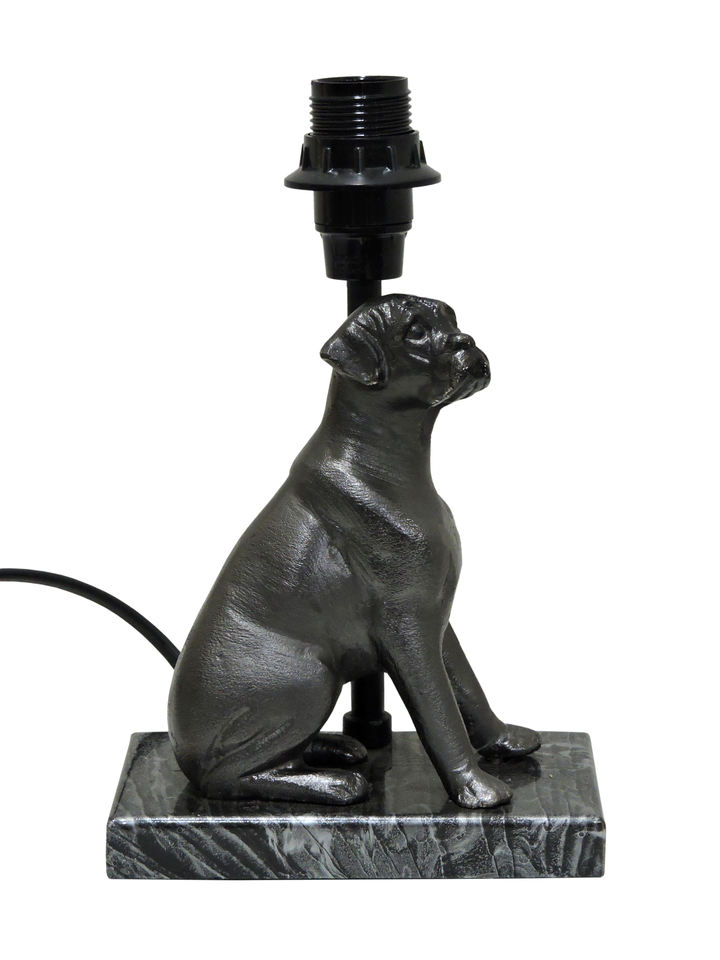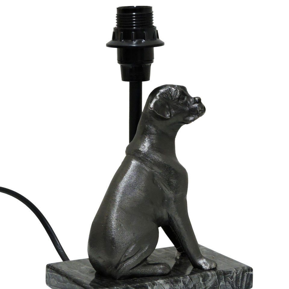 Base de lampe de table en argent antique, statue de chiot assis en aluminium moulé artisanal sur piédestal en marbre, sans abat-jour