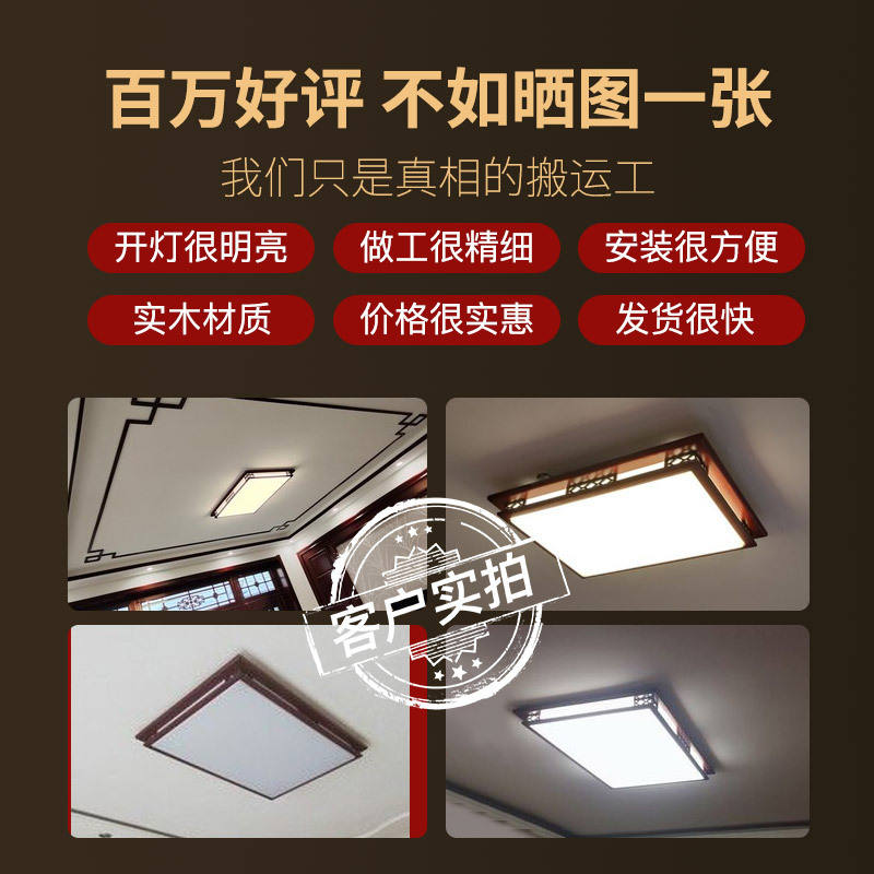 Plafonnier chinois de style antique en bois massif rectangulaire pour salon, salle d'étude, salle à manger, chambre à coucher