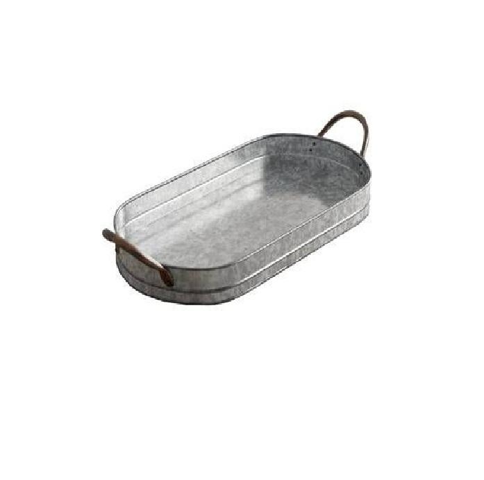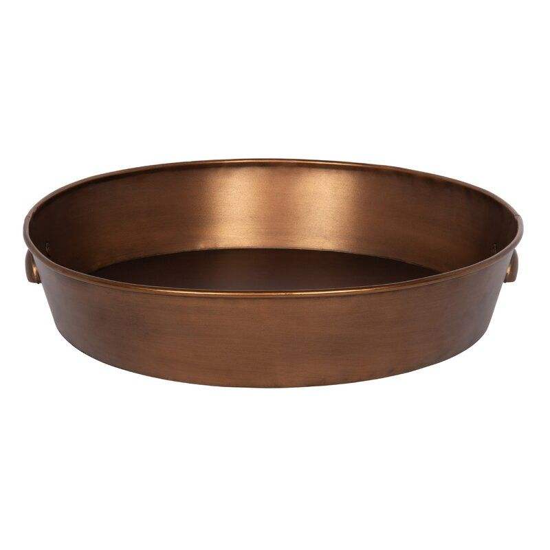 Plateau rond en fer galvanisé de style antique, plateau de service et de présentation vintage en métal avec poignées en bois, en solde