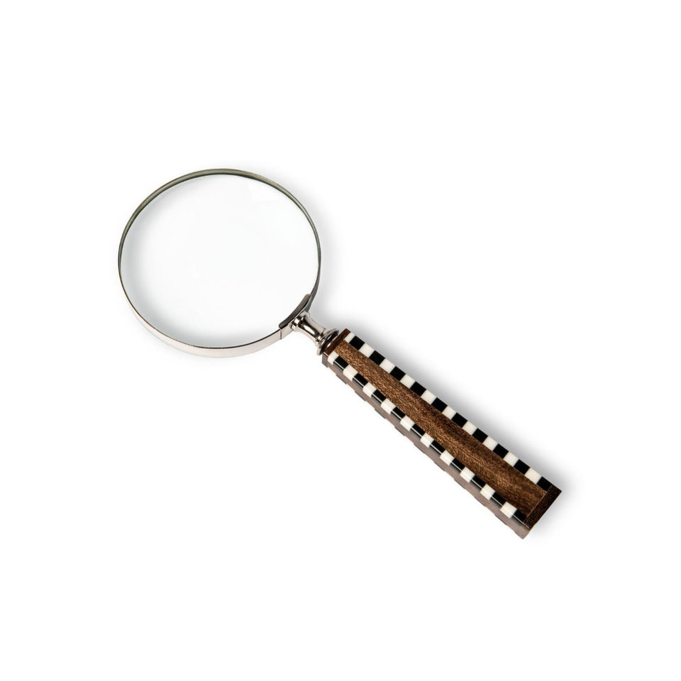 Loupe de lecture décorative de style antique avec poignée en résine à carreaux noirs et blancs et finition en laiton
