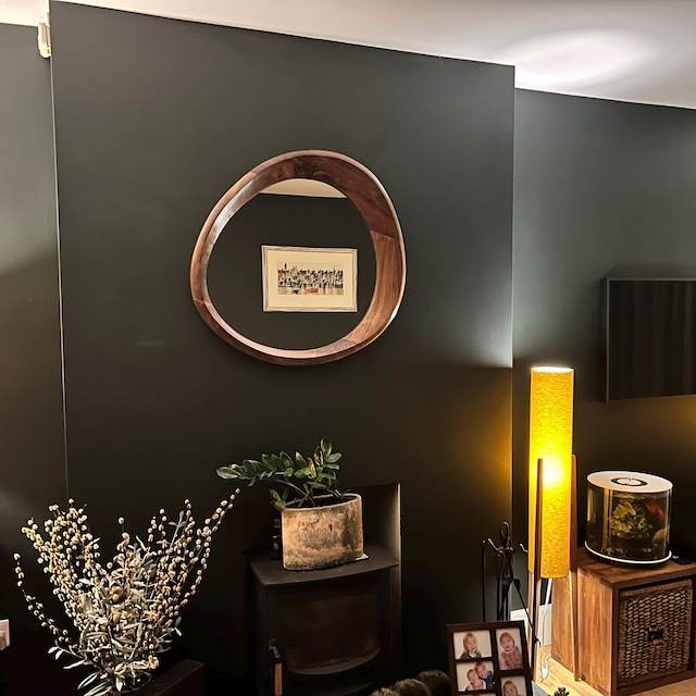 Miroir de courtoisie léger et écologique de style antique, fait à la main, cadre en bois de noyer véritable, design irrégulier ondulé, décoration d'intérieur Art déco