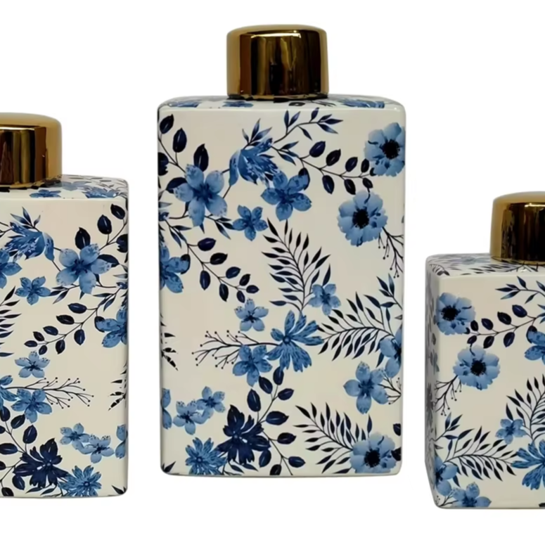 Ensemble de jarres en porcelaine de style antique avec une esthétique de l'art du cobalt et de l'or du XVIIIe siècle pour une décoration transculturelle