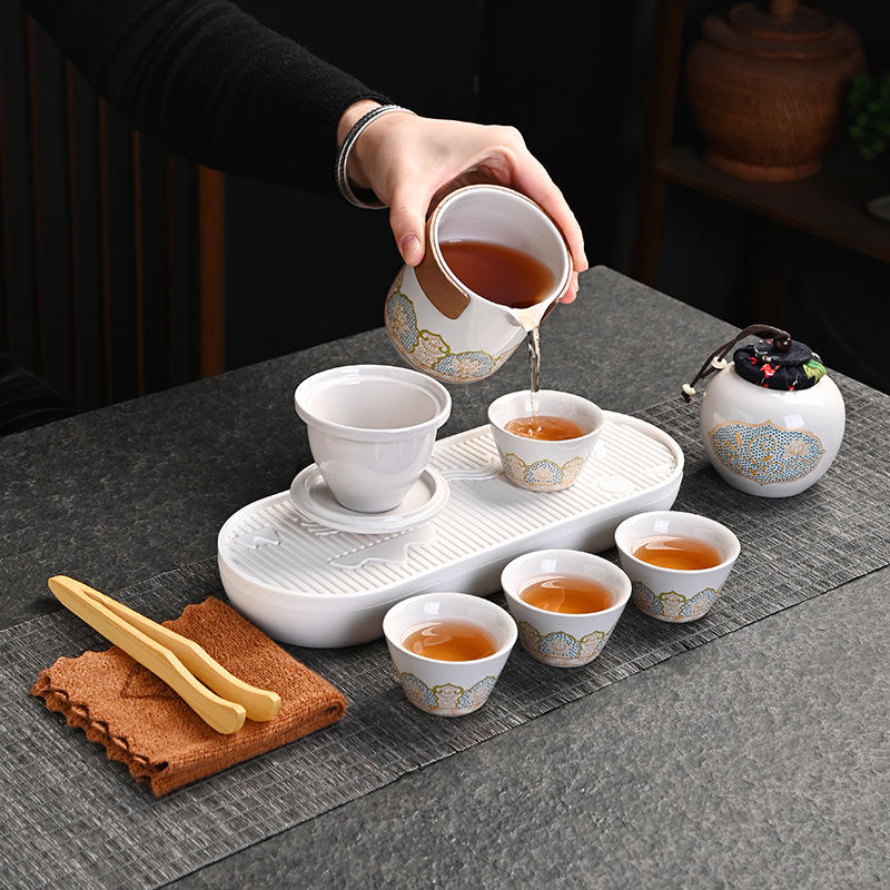 Service à thé de voyage de style antique en céramique, plateau à thé portable d'extérieur avec couvercle, design chinois traditionnel pour les voyages