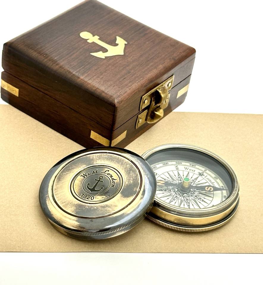 Boussole à bouton poussoir en cuivre de style antique, cercle, rectangle, métal, fabrication artisanale, écologique, légère, pliable, incrustée