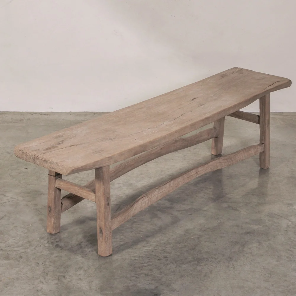 Antique Teak Wood Bench Home Furniture Decorative Piece Polished Non-Foldable