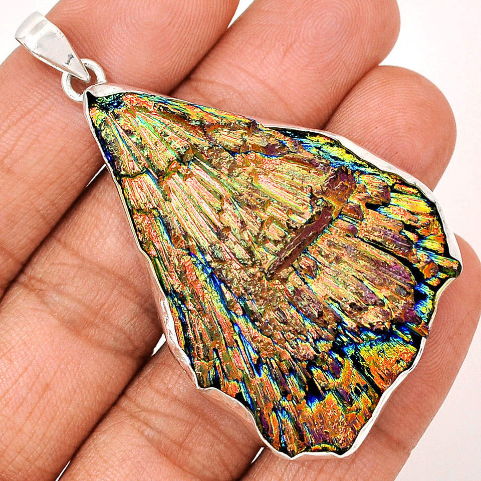 Product Name:Titanium Kyanite Feather 925 Sterling Silver Pendant Handmade