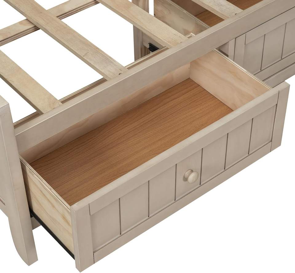 Antique White Solid Wood Daybed with Storage Shelves and 3 Drawers Traditional Design for Bedroom