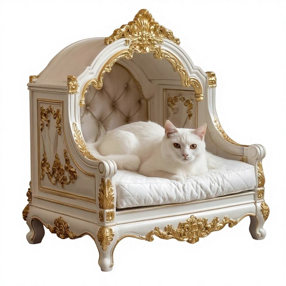 Maison de luxe pour animaux de compagnie en velours blanc antique avec des accents dorés, villa pour canapé-lit d'intérieur, amovible et lavable pour chiens et chats