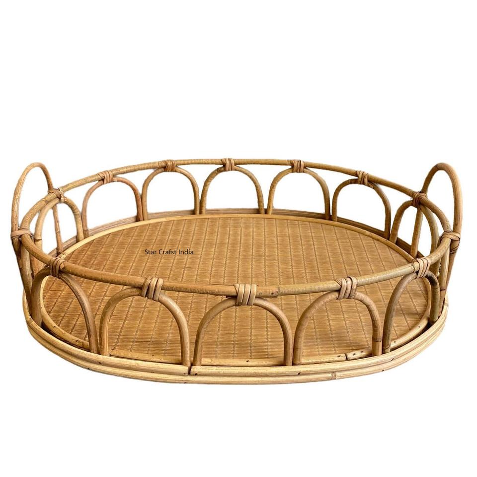 Plateau de service de mariage de forme ronde en osier antique de conception créative plateau de service de nourriture fournitures de restaurant et d'hôtel en gros d'usine
