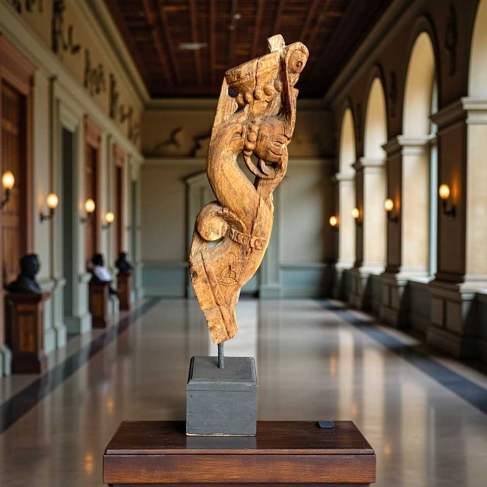 Support mural en bois antique avec motif végétal, style design traditionnel pour salon