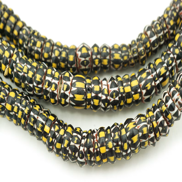 Antique Yellow Venetian Chevron Glass African Trade Beads | Mixed Old Tribal Rustic Beads for Wholesale Bulk Purchase