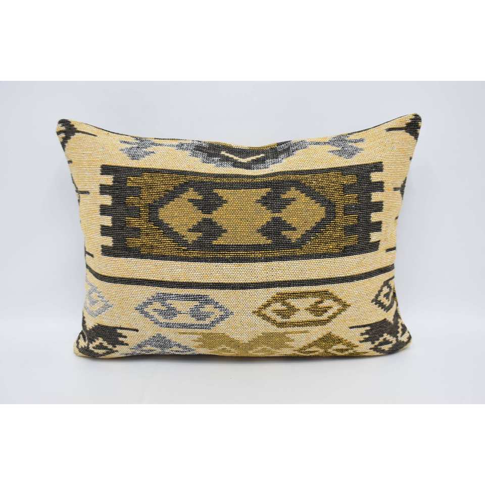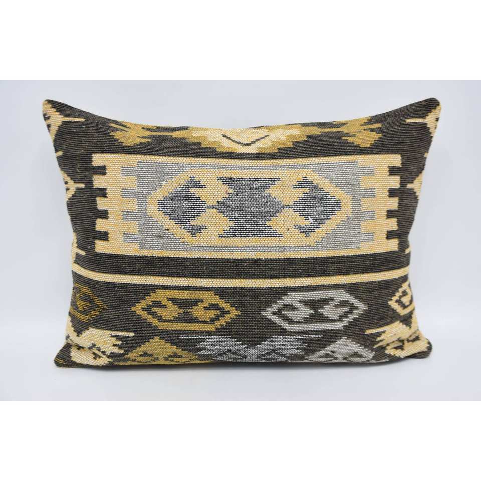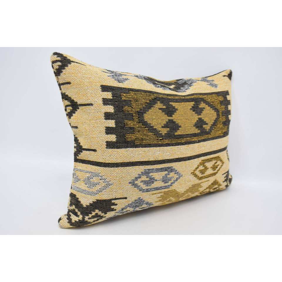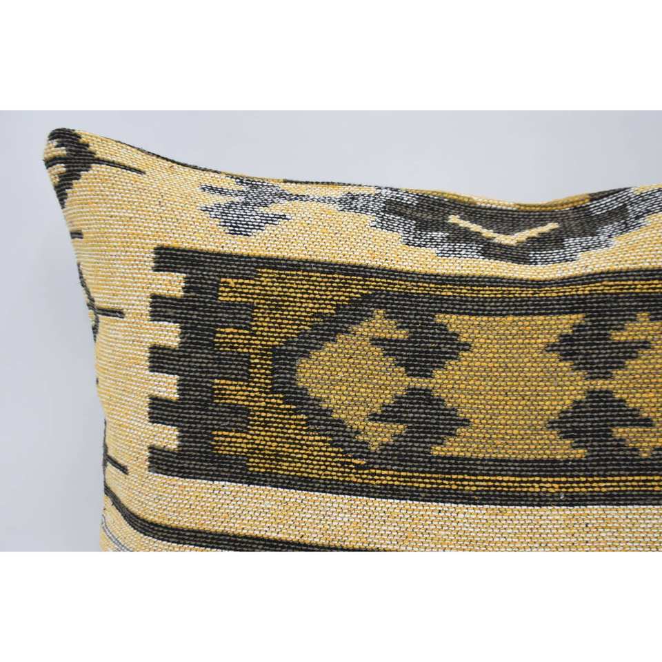 Coussin en laine jaune antique 20x28 pouces coussin tissé à motif géométrique et floral pour literie ou usage décoratif