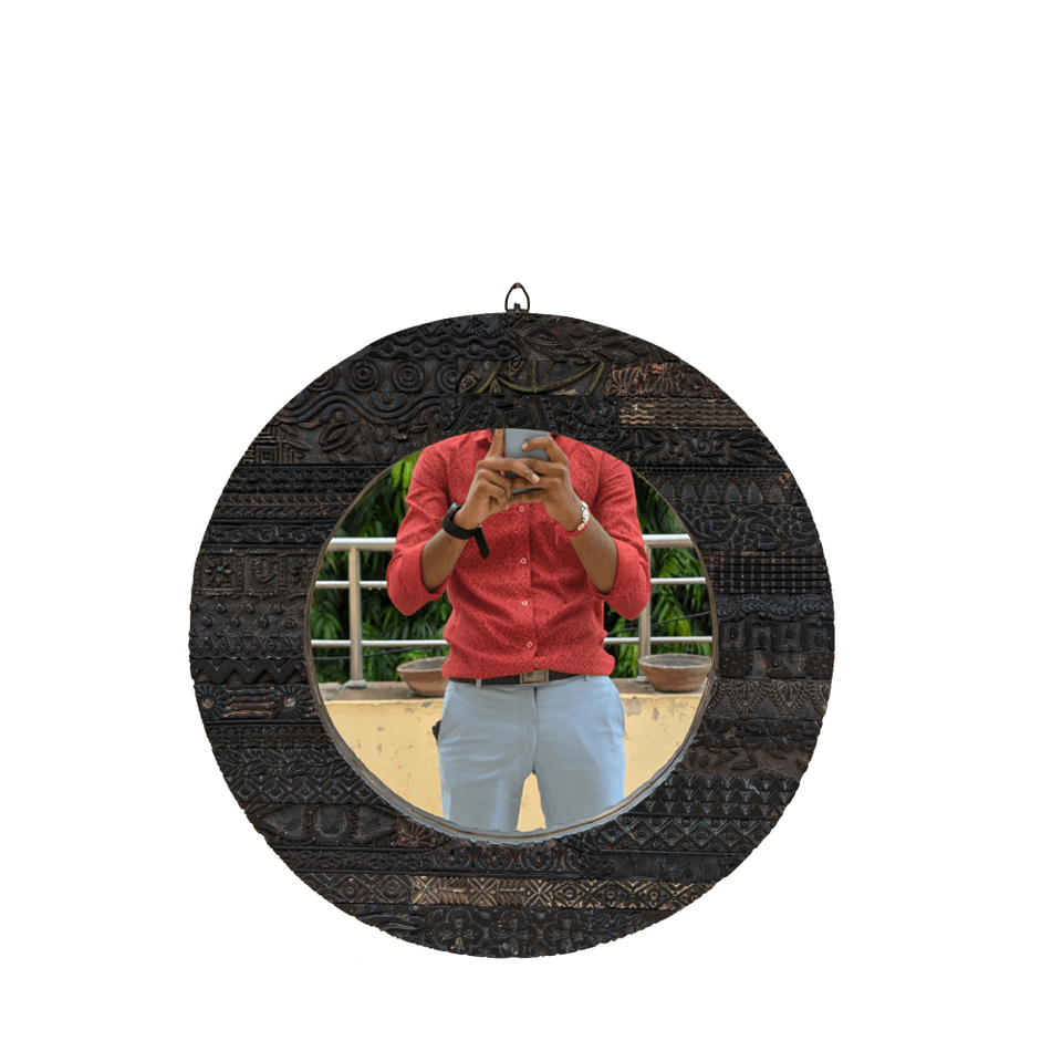 model number:12.---Reclaimed Wood Round Mirror - Y2J