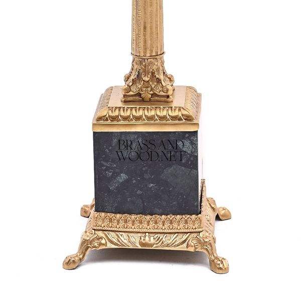 Lampe de table en laiton antique avec colonne décorative base en marbre noir et abat-jour en tissu élégant pour intérieurs de luxe
