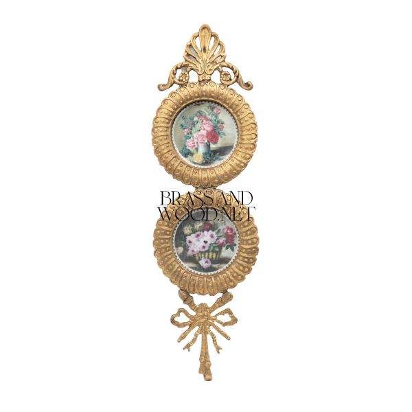 Tenture murale en laiton antique avec double assiettes rondes en porcelaine cadre décoratif vintage design floral peint à la main