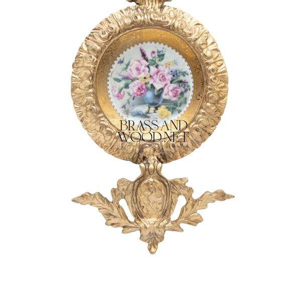 Tenture murale en laiton antique avec triple assiettes rondes en porcelaine cadre décoratif vintage peint à la main