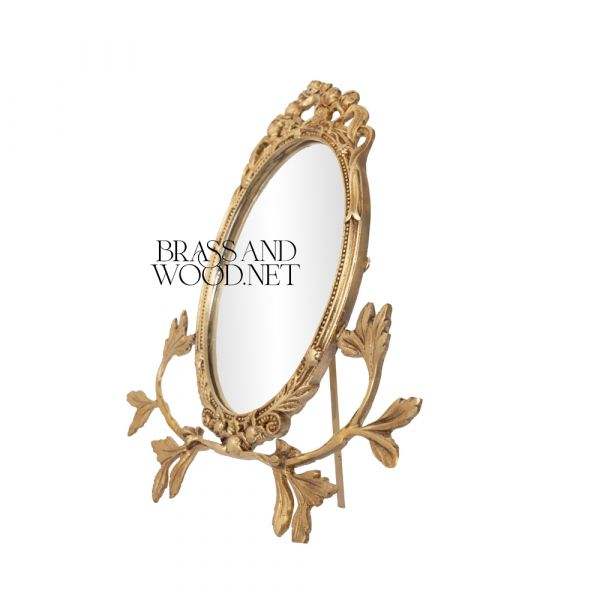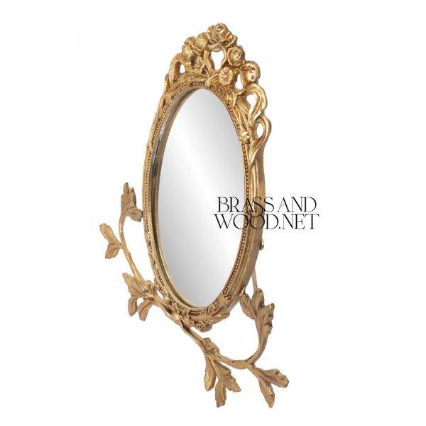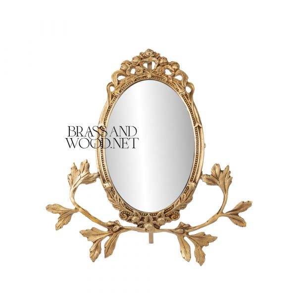 Miroir mural ovale antique en laiton avec cadre floral orné de style rococo vintage décoratif à collectionner pour la maison