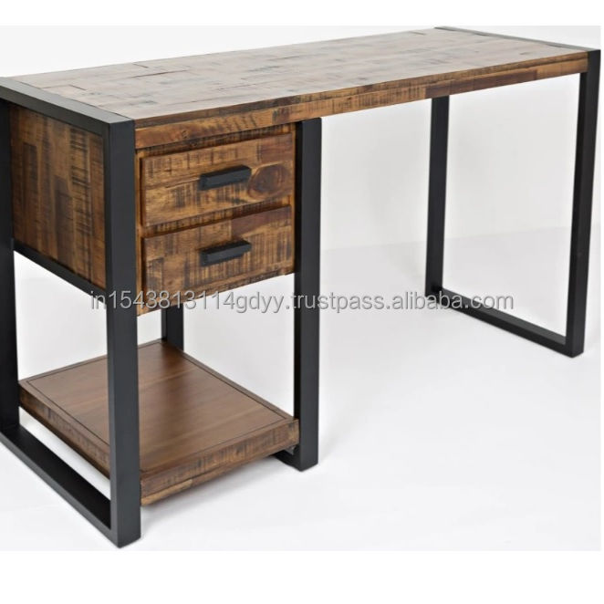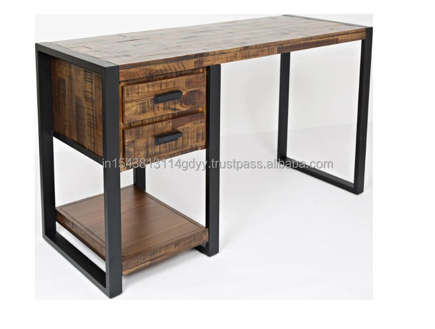 2025 vente chaude moderne palissandre et fer bureau d'étude en bois massif avec 2 tiroirs bureau à domicile et salle à manger ordinateur/ordinateur portable/bureau Table