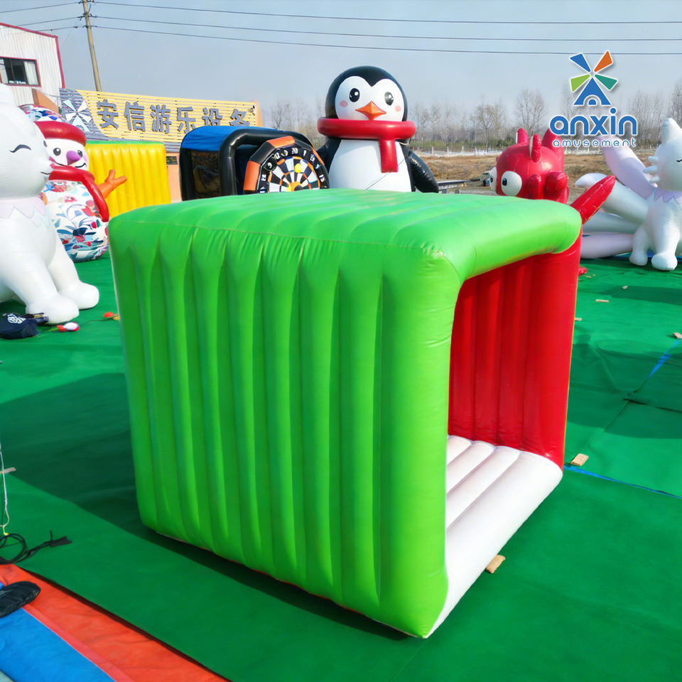 Cube gonflable géant d'obstacles Anxin Factory, durable, vert, blanc, rouge, bleu, équipement de jeu sportif pour adultes en plein air